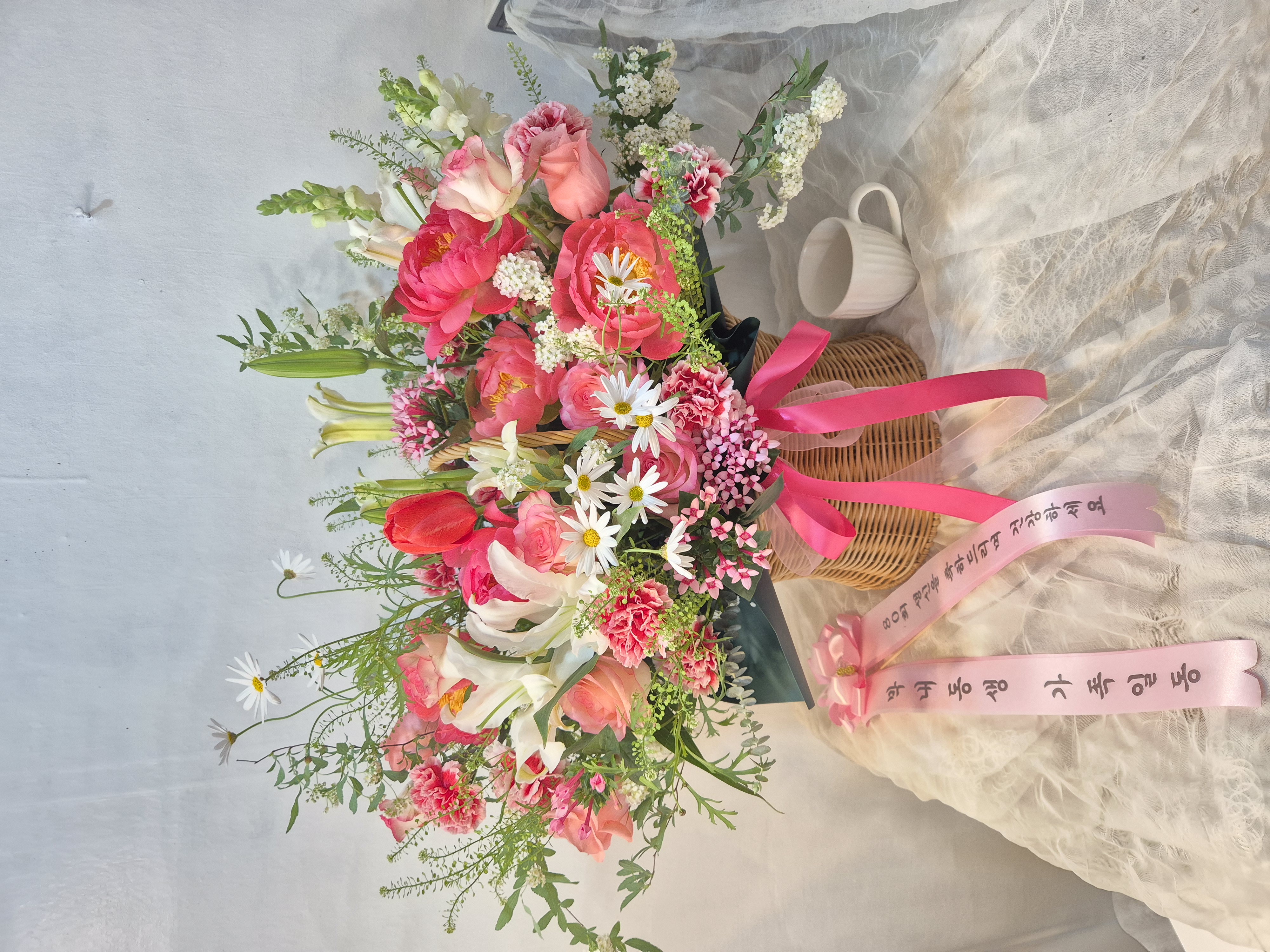 핑크폰꽃바구니