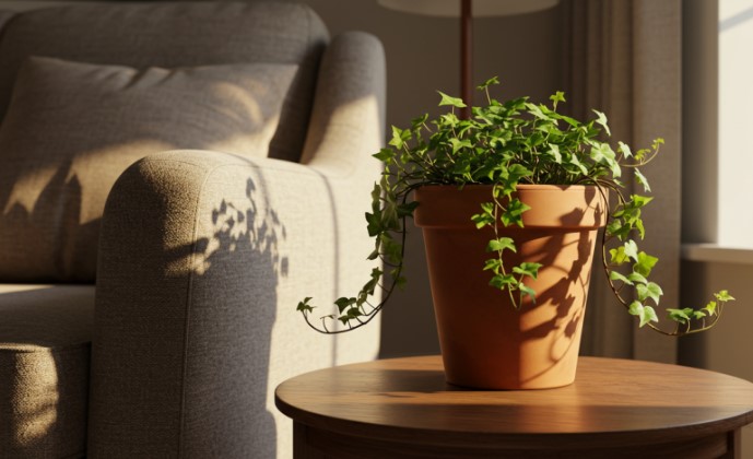 벽이나 선반을 타고 자라는 덩굴 식물로 전자파뿐만 아니라 휘발성 유기화합물 제거에도 도움을 줄 수 있어요